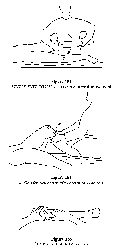 Hemarthroses, interarticular pain, abnormal lateral or antero-posterior movements.