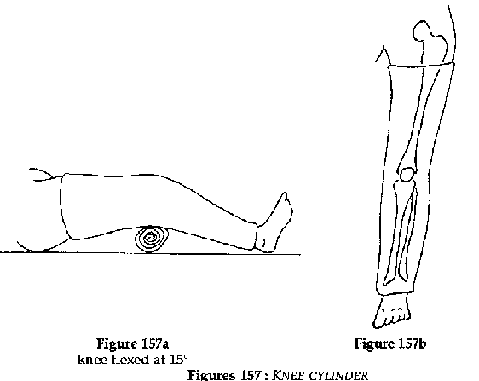 If hemarthrosis is severe, apply a posterior plaster splint supported with a noncompressing bandage. After 48 hours, drain the, hemarthrosis and place the limb in a knee cylinder which should be split from the buttock to the ankle, the knee flexed at 15°. The plaster should remain for 45 days in severe cases (abnormal knee movements)