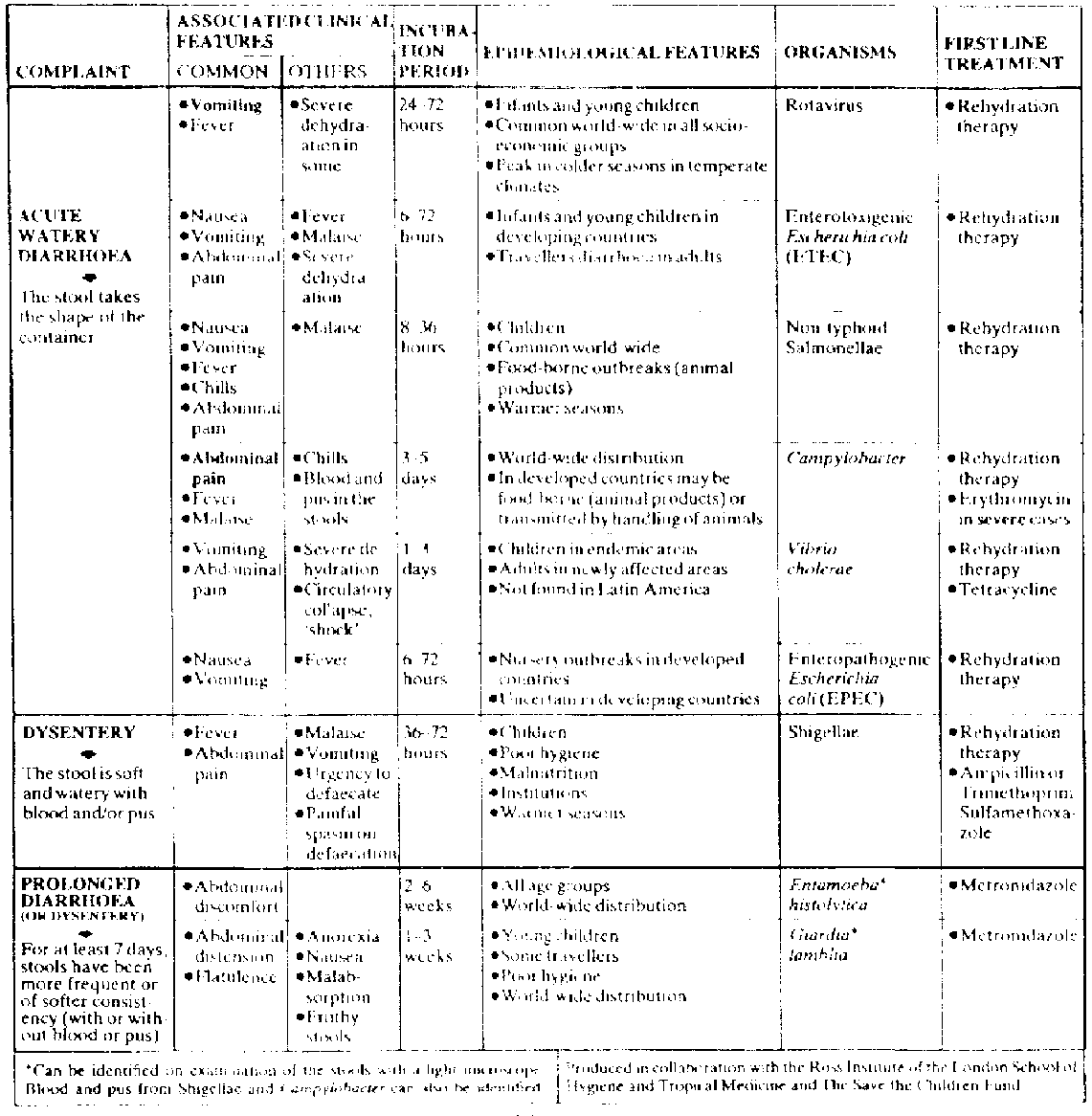 Diarrhea) summarizes some mayor causes, also Control of Communicable Diseases in