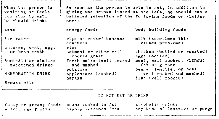 - Hygiene including hand cleanliness and "kitchen" sanitation for preparing rehydration solutions.