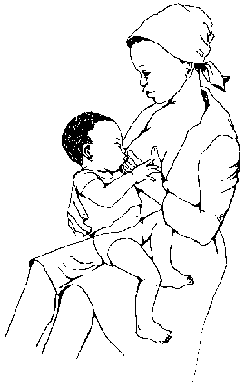 Situation Description: The child who is one year old had four to six loose stools yesterday. The mother had only one packet of ORS and mixed half of it on the first day of her child's diarrhea. She gave the ORS solution from a cup but the baby coughed and choked, and refused to drink. The mother is trying to wean the child from the breast and so is nursing only once a day. The child only wants to sleep and when awake is always reaching for the mother's breast.