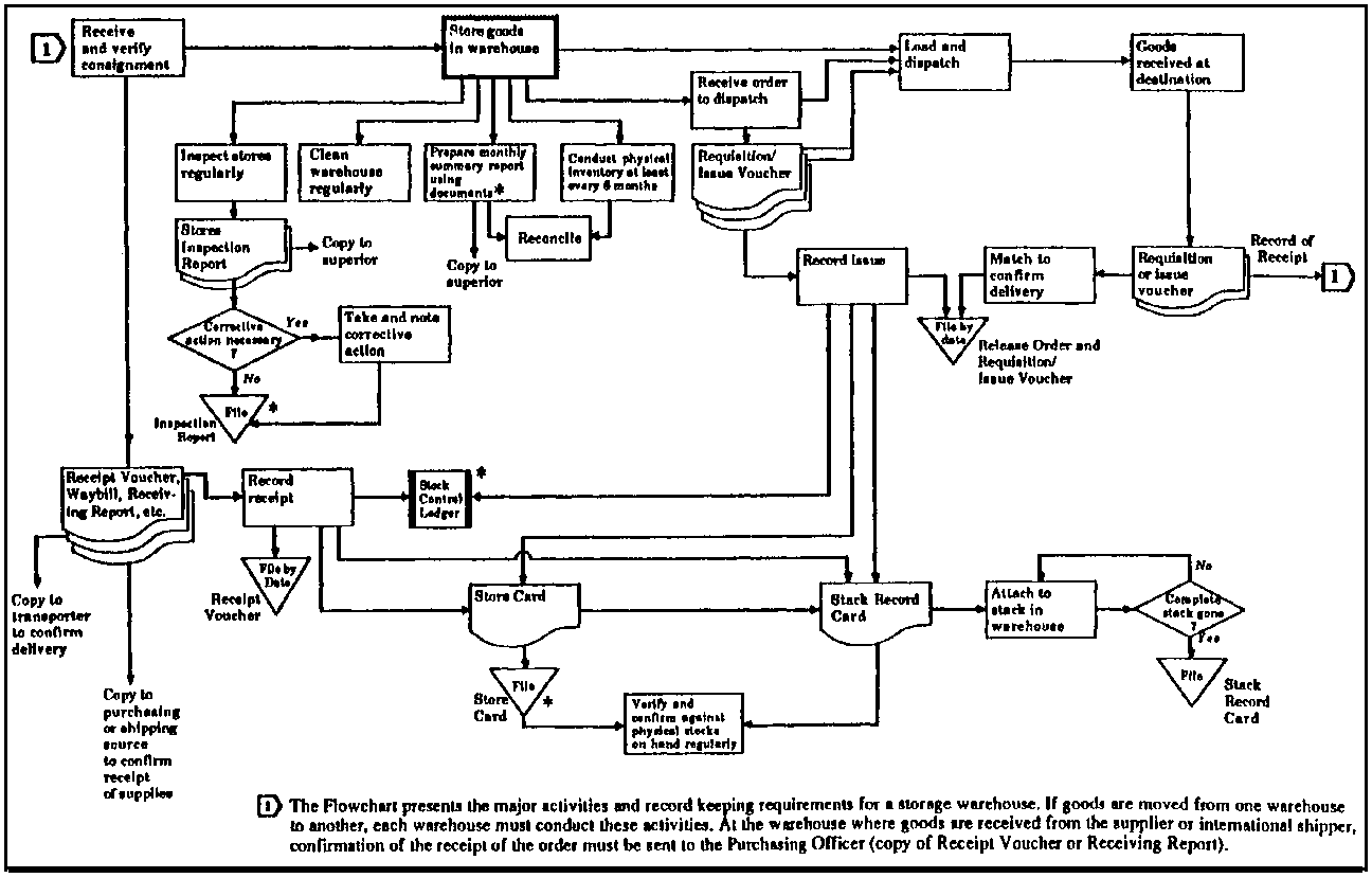 (a) Food Storage Manual. 2nd edition, WFP. 1983. Although this manual deals principally with food storage, the information can be applied equally to non-food items. Useful details on storage structures, general storage practices, insects and mites found in stores, fumigation, and rodent behaviour and control are included in the text.(b) Food Storage: Handbook on good storage practice, WFP, 1979. A simple, practical, well-illustrated book for storekeepers, it demonstrates the basic principles of stores receiving, handling, stacking, cleaning, inspection, disposal, accounting and record keeping.
