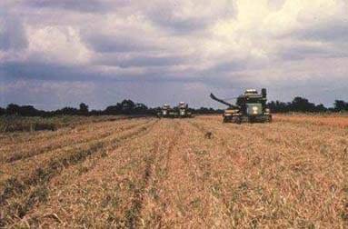 One of the important features of rice production systems in the southern USA is the impact of machinery, such as this harvesting equipment (G.5). The tire tracks left in the moist soil will provide ideal conditions for oviposition by Psorophora columbiae, the floodwater mosquito. It is estimated that these conditions account for between 1.7 and 2.9 million P. columbiae eggs per hectare in recently harvested rice fields.
