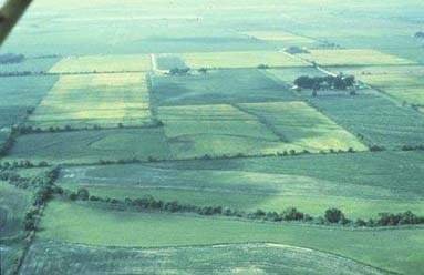This oblique aerial photograph of the riceland study site gives additional information concerning micro relief and vegetation.