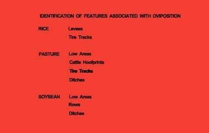 This colour infrared photograph of levees and tire tracks in a recently harvested field is an impressive example of the density of features conducive to the breeding of Psorophora species under modern conditions of cultivation.