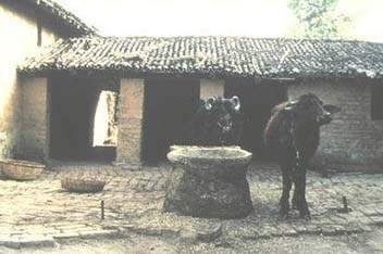 The proximity between humans and livestock is emphasized in this slide showing a kala-azar (visceral leishmaniasis) affected household in northern India. The local sandfly vector, Phlebotomus argentipes, is largely zoophilic, feeding on cattle. Locating cattle sheds away from human dwellings will lead to a significant decrease in health risks.