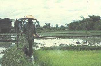 J.2 Spraying rice for pest control, Lao Peoples Republic