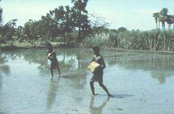J.6 Broadcasting fertilizer in paddy fields, Tamil Nadu, India
