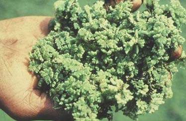 Azolla is an aquatic, floating fern that lives in symbiotic association with a blue alga, Anabaena azollae. It fixes nitrogen from the atmosphere and has therefore been promoted as cheap alternative for certain chemical fertilizers in irrigated rice fields. Farmers introduce Azolla into the rice fields, let it expand in rice fields, and at the end of the cropping cycle work the Azolla cover into the soil. An added advantage of Azolla is that it reduces weed growth. Still, Azolla has not lived up to its initial promise. Once large stretches of rice fields were covered with it, it turned out to be sensitive to its own specific pests. Also, farmers found that working the Azolla into the soil required considerably more effort than the application of chemical fertilizers, which in any case it could not entirely replace. The possibility of using Azolla as a method of controlling rice field bleeding mosquito vectors caught the attention of medical entomologists and was the subject of studies by Lu Bao Lin in China and F.P. Amerasinghe in Sri Lanka.