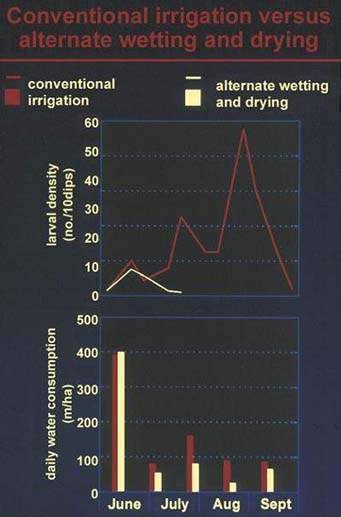 J.25 Vector larvae populations in conventionally irrigated rice fields versus those with alternate wetting and drying