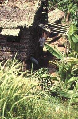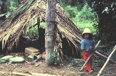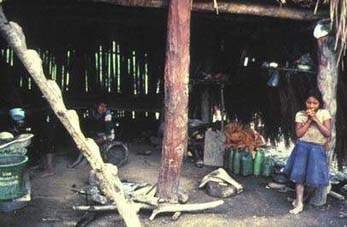 The living conditions of this rice growing family in Bolivias lowlands are affected by the various endemic diseases they are exposed to: malaria, yellow fever and some of the more exotic or emerging arboviral haemorrhagic fevers. This type of dwellings offers little or no opportunity for personal protection measures to become part of the structure.