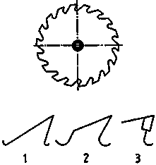 circular saw blades 1 acute-angled tooth (normal tooth), 2 gullet tooth, 3