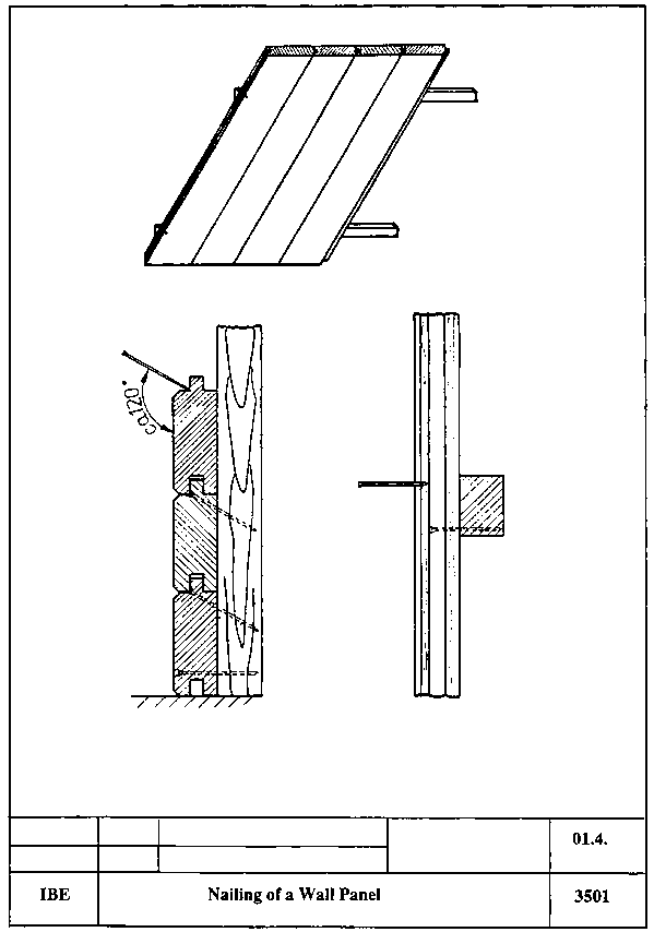 Put the next board onto the spacing strip, joint it with the first one by slight blows with the hammer against the tongue (use a sectional shim block of wood). Nailing as under 5.! Proceed in the same way with all the other boards! |