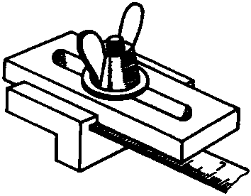 Adjustable stops permitting the scriber to be guided along flat datum edges or faces. The size is set by means of a steel gauge.