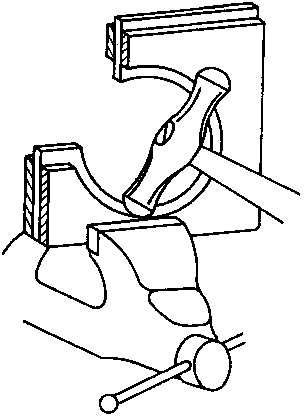 a chasing hammer or curving hammer the border projecting inside is bent down with puckers by blows hitting obliquely.Blacksmiths hardies of various shapes, the anvil tool or blacksmiths double face sledges may also be used as hammering support.