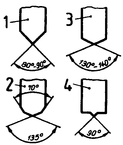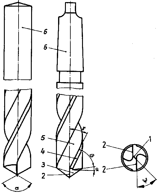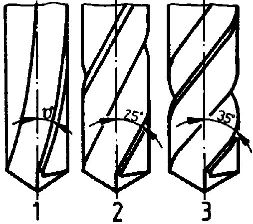 The three types of drills are distinguished by the rake angle, which determines the slope of the helical flute (type hard -15°; type soft - 35°).