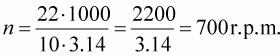 n = rotational speed (in r.p.m.)