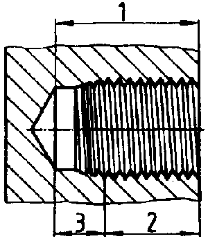With blind holes, the chamfer of the thread tap (third tap) is to be taken into consideration as follows:
