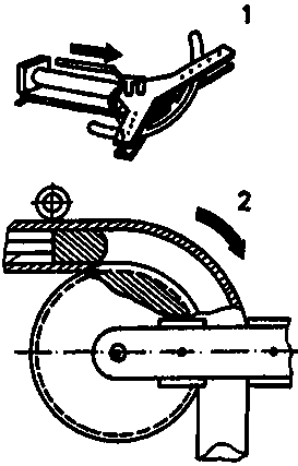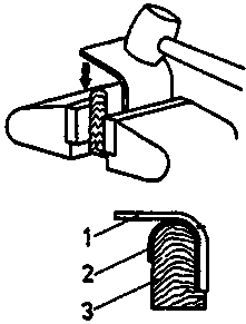 Thin, long sheet metals with short bending edges may be pie-bent by hand or with intermediate plates. Not until then do you strike with the hammer from the exterior towards the bending edge. To avoid the formation of cracks at me bending edge, you should not directly strike on the bending.