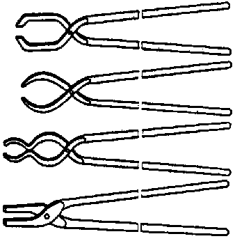 They grip the workpieces when being inserted into the furnaces and when being removed as well as when being suspended into the quenching baths. Their bit-type shape can be formed variously in order to use them properly according to the shapes of workpieces.