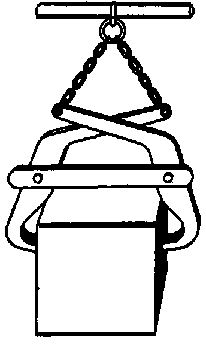 Heavy workpieces which cannot be gripped by means of claws are inserted into the hangers and moved by means of a lifting device.