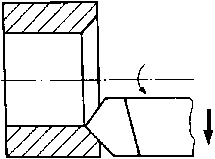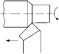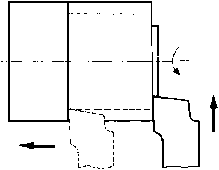 The facing operation may be performed from the outside inwards or vice versa. In order to avoid convex (curved) surface shapes of the end faces, the tool slide is to be locked in longitudinal direction prior to cutting.