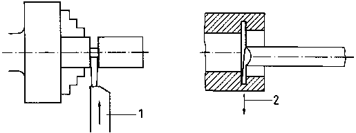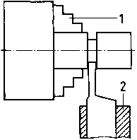 - The part is held in a chuck and for external grooves a live centre is used as counter-support.- The recess in the circumferential surface is turned by a straight right-hand end-cut turning tool or hook tool.