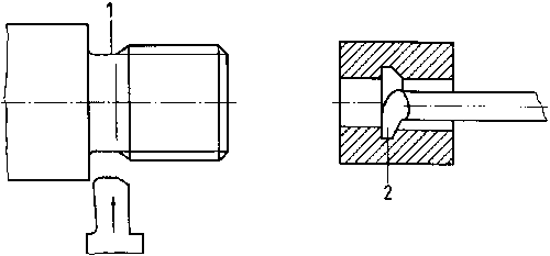 - When recessing thread grooves, grinding of the 60° taper for the thread runout can be done at the same time.- The exact width of the end-cut turning tool necessitates exact sharpening but guarantees dimensional consistency for many parts and is economical.