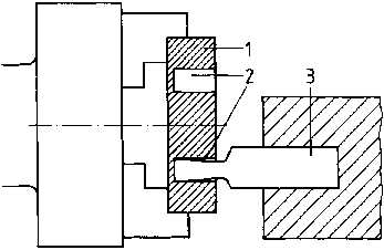 The cutting-out technique involves machining of the workpieces on their end faces and is used for specific jobs. The turning tool is moved in axial direction. The right-hand end-cut turning tool, specially ground, is mostly used (see Fig. 4 - relief-grinding of the secondary cutting edge to avoid "dragging" of the tool).