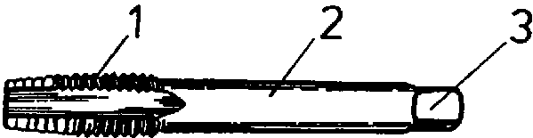 1 tap head (with entering, plug and plug third taps), 2 tap shank, 3 square to hold the tap wrench