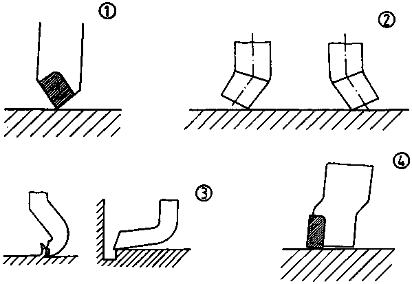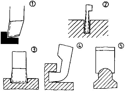The slotting tools are similar to the turning tools and have various shapes.