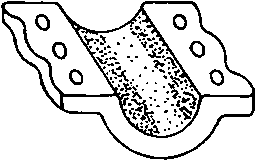 3. The touching-up is performed by several rotations of the shaft in the bearing shells, afterwards the bearing shells are again disassembled.4. The points of contact (bearing spots) are shaved off by pushing rotary motion with a triangular or spoon scraper.