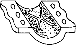 5. The touching-up and scraping is continued until a uniform bearing contact pattern is visible. It is favourable that the bearing marks lie denser on the side faces of the bearing than at the top and at the bottom.