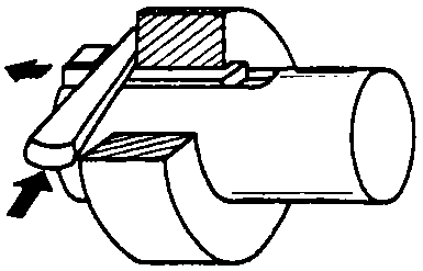 It is driven out with the help of a hammer and suitable non-ferrous metal arbor (drift) by blows opposite the driving-in direction.