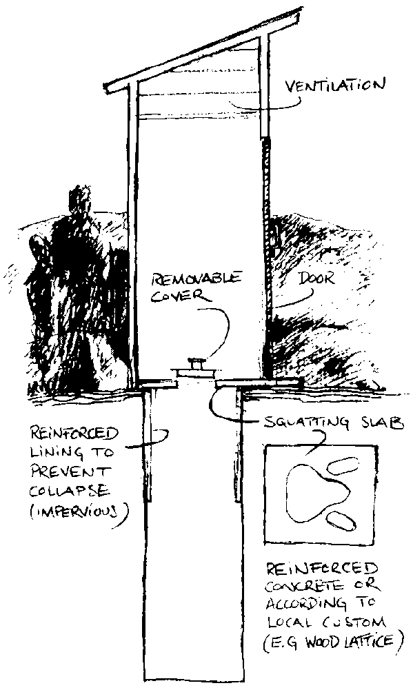 · Communal trench latrines may be needed initially, but in most circumstances pit latrines are much better;