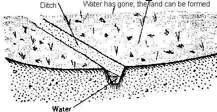 water flows into this ditch. Bit by bit the land beside the ditch becomes dry