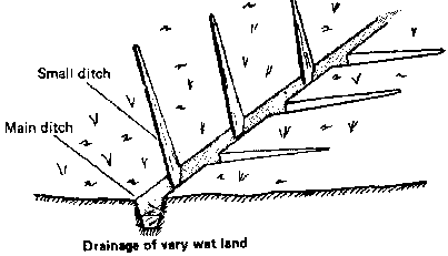 When the land is very wet, a number of ditches must be made.