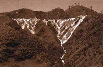 Collapse due to failure of the supporting material. This usually takes the form of a rock fall where a weaker band of material has eroded to undermine a harder band above. These are very common in mixed Churia strata. |