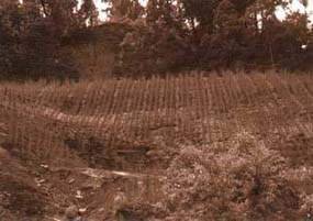 · Cut stems and leaves of any plants. It is important not to use plant parts carrying seeds, as this will lead to a big weeding problem. Annual herbs such as ban mara (Eupatorium adenophorum) and tite pate (Artemisia vulgaris) are best if they are allowed to wilt before use. This is the only use of these plant species in bio-engineering.· On slopes greater than 30°, wide mesh jute netting (150 mm × 500 mm mesh size) is needed to hold mulch on to the surface (see Section 3.16).