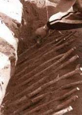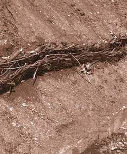 3 Place pegs at intervals of about 250 mm along the lines: this is done by placing large cuttings into the ground. Pegs should protrude about 300 mm.