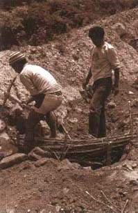 3 If hardwood cuttings are to be used, a hole must be made right through the gabion into the original ground below. This is normally practical only for gabion mattresses or revetments of 1-metre thickness.