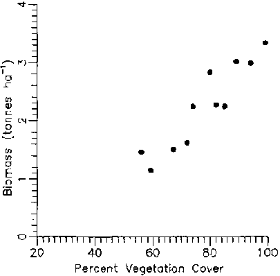 Figure 6.1 show example correlations between biomass and vegetation cover and vegetation cover and runoff.