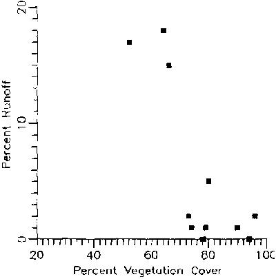 Note that no account is taken of other factors that influence runoff production and that the coefficient of correlation between runoff amount and vegetation cover is 0.91.