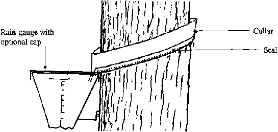 In Figure 6.6, in addition to free-standing gauges under the canopy, a peripheral collector is wrapped around the trunk to direct flow into a single rain gauge that is covered.