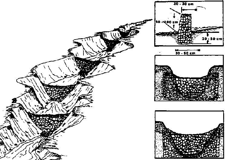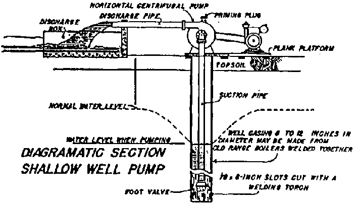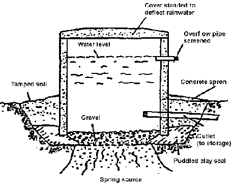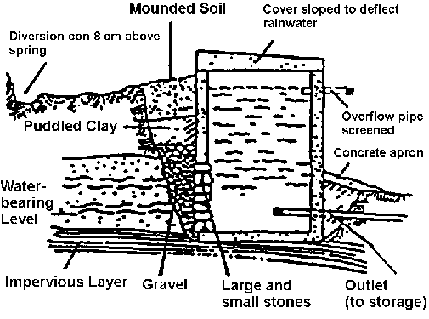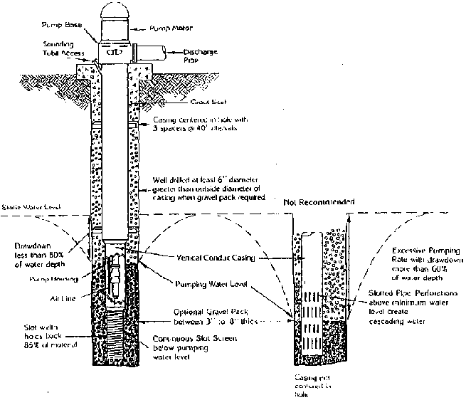 Hand dug wells have been used through the centuries as a source of water for domestic and irrigation uses. Figure 3.47 shows a schematic of one such well. Most hand dug wells are less than 20 meters in depth, even though some wells have been constructed deeper than 60 meters.