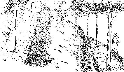 To avoid dropping a disconnected section of drill rod down the borehole, a rod fork or auger fork is slid under a coupling to support and retain lower sections of the drill stem (Figure 3.42). This rod fork may be constructed from a 1/4 inch (6 millimeter) steel plate, or from a notched hardwood board. In either case, the notch must be wide enough to slide around the drill rod, but narrow enough to retain a coupling.