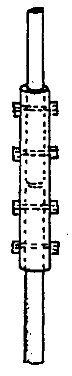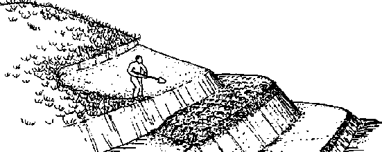 An auger handle is constructed by clamping two hardwood handle sections around the drill rod (Figure 3.41). As the borehole advances, the bolts are loosened, and the handle is relocated to a more convenient height.