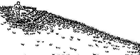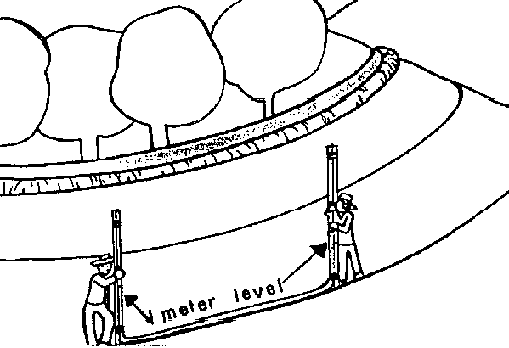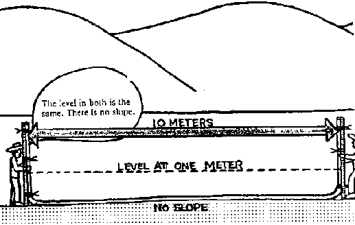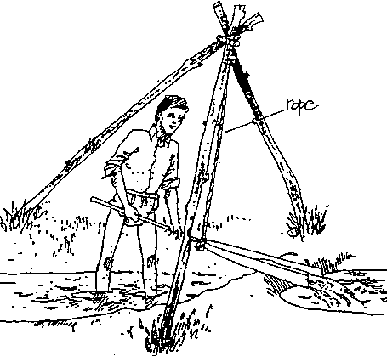 A well is a structure that consists of an open hole that penetrates into the water bearing strata below the surface of the ground. The walls of the well are kept open by a liner or casing, which is typically made of plastic, metal, or rock. Holes in this casing (the so-called screened portion) permit water to enter the well from which it is extracted. Wells may be dug by hand, drilled mechanically with hand or machine tools, or the casing may be driven into the ground, creating the hole as it penetrates. The hydraulics, hydrogeology, and methods of well drilling are generally too complex and extensive to be treated in this manual. The irrigation specialist who must know more about wells should review References 5, 13, and 15. In this manual, some basic concepts of well drilling are discussed. Details are presented on the construction of only driven wells and hand drilled wells. These wells are low cost and, in areas where water tables are within 30 feet (10 meters) of the surface, will generally provide sufficient water for irrigating garden-sized farm plots.