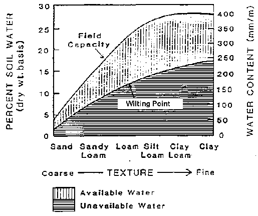 Infiltration indicates how much water is absorbed into the ground during a specified period and is typically expressed as a rate (e.g. mm per hr or cm per hour). Infiltration capacity describes the maximum amount of water that will infiltrate into a particular soil within a specific time period. If the rainfall exceeds the infiltration capacity during the specified period, then the excess water begins moving over the soil surface as runoff. The infiltration capacity is determined by soil texture and structure. Soil texture indicates the relative amounts of sand, silt, and clay particles found within the soil. Soil structure indicates the way these particles are bound together by organic materials and other adhesive substances. Typical infiltration rates for different soil texture classes are as follows: