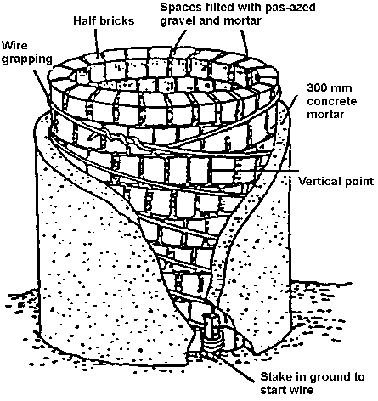 Each type of auger can be produced locally using discarded sections of casing, pipe, sheet metal, or perhaps the tubular section of an automobile drive shaft. Local soil types determine the type of construction used. In general, the best performance in soft cohesive soils can be obtained with an open blade or helical auger. Hard clay soils may be excavated with the bucket auger. In non-cohesive soil, the tapered tube auger is most effective (Figure 3.41).